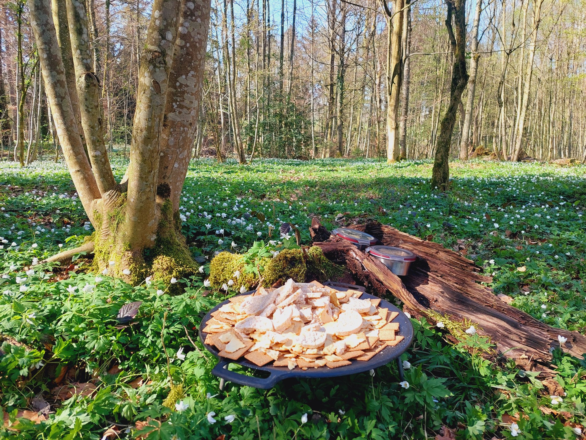 Nach dem Kochen setzten wir uns zusammen und geniessen unser selbstgemachtes Mittagessen in der Natur. Hierbei gibt es viel zu erzählen und lachen.